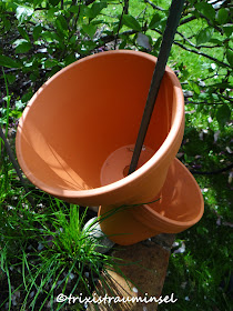 Dann könnt ihr den ersten Topf so auf die Stange stecken,